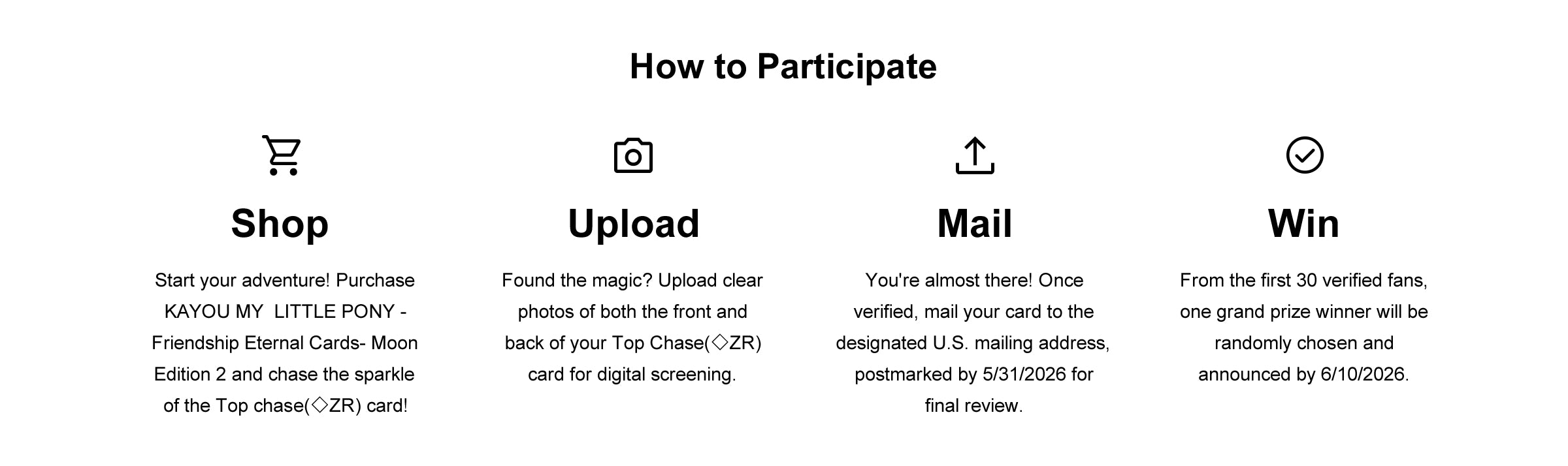 Questions? See our FAQs.For more details, read the Official Campaign Rules Contact us: help@kayouchasemagic.com
